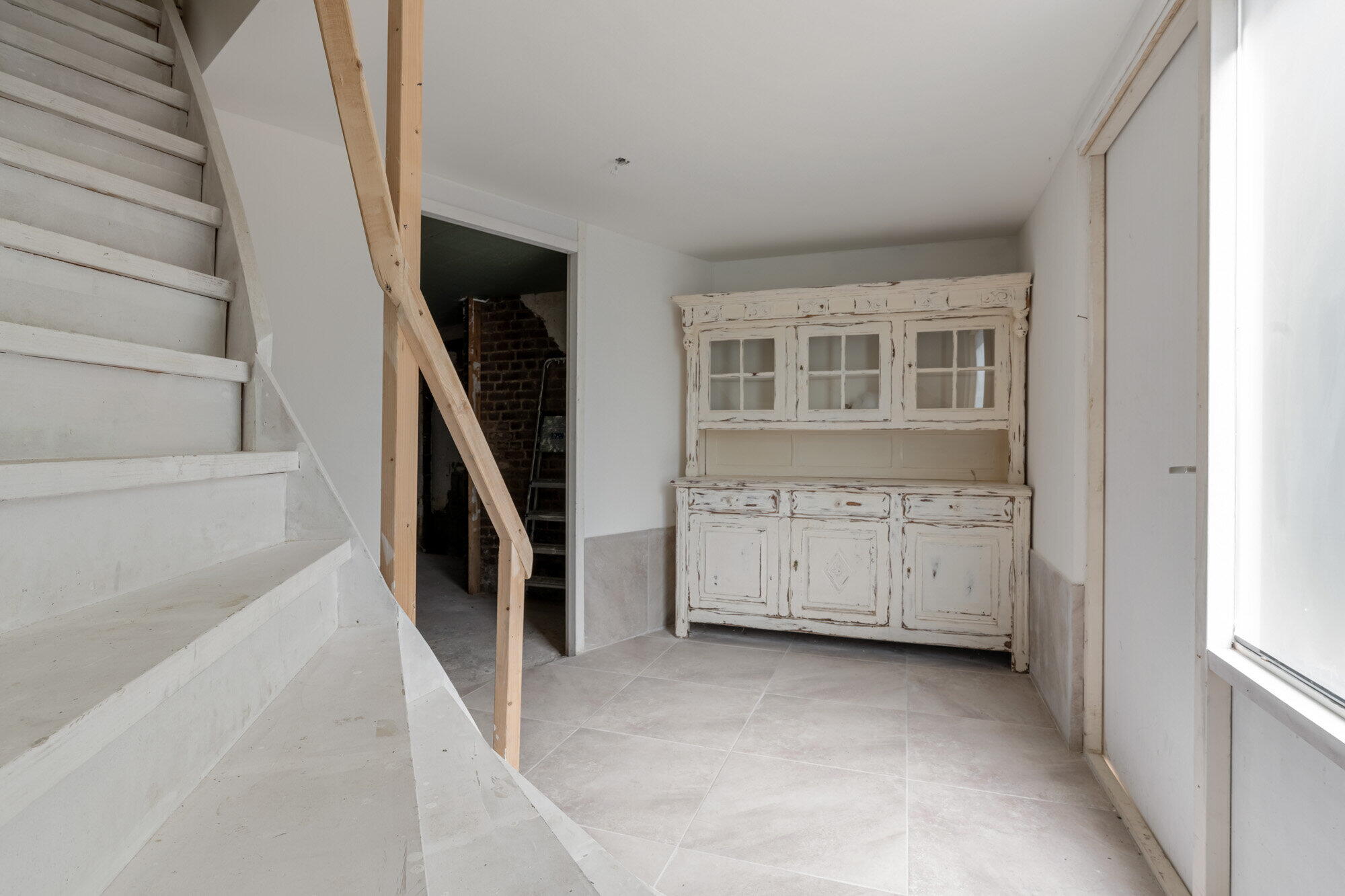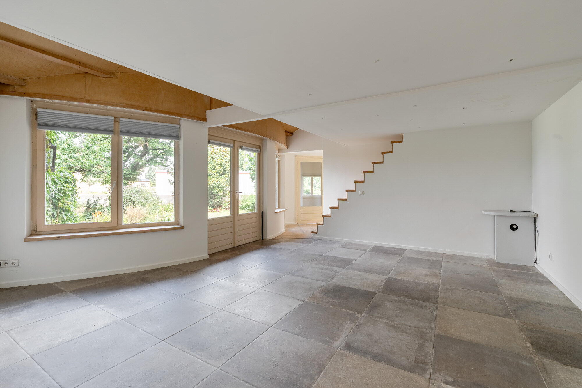 - Ruime living die volledig betegeld werd met zicht op de tuin, die tevens toegankelijk is via de dubbele deur;
