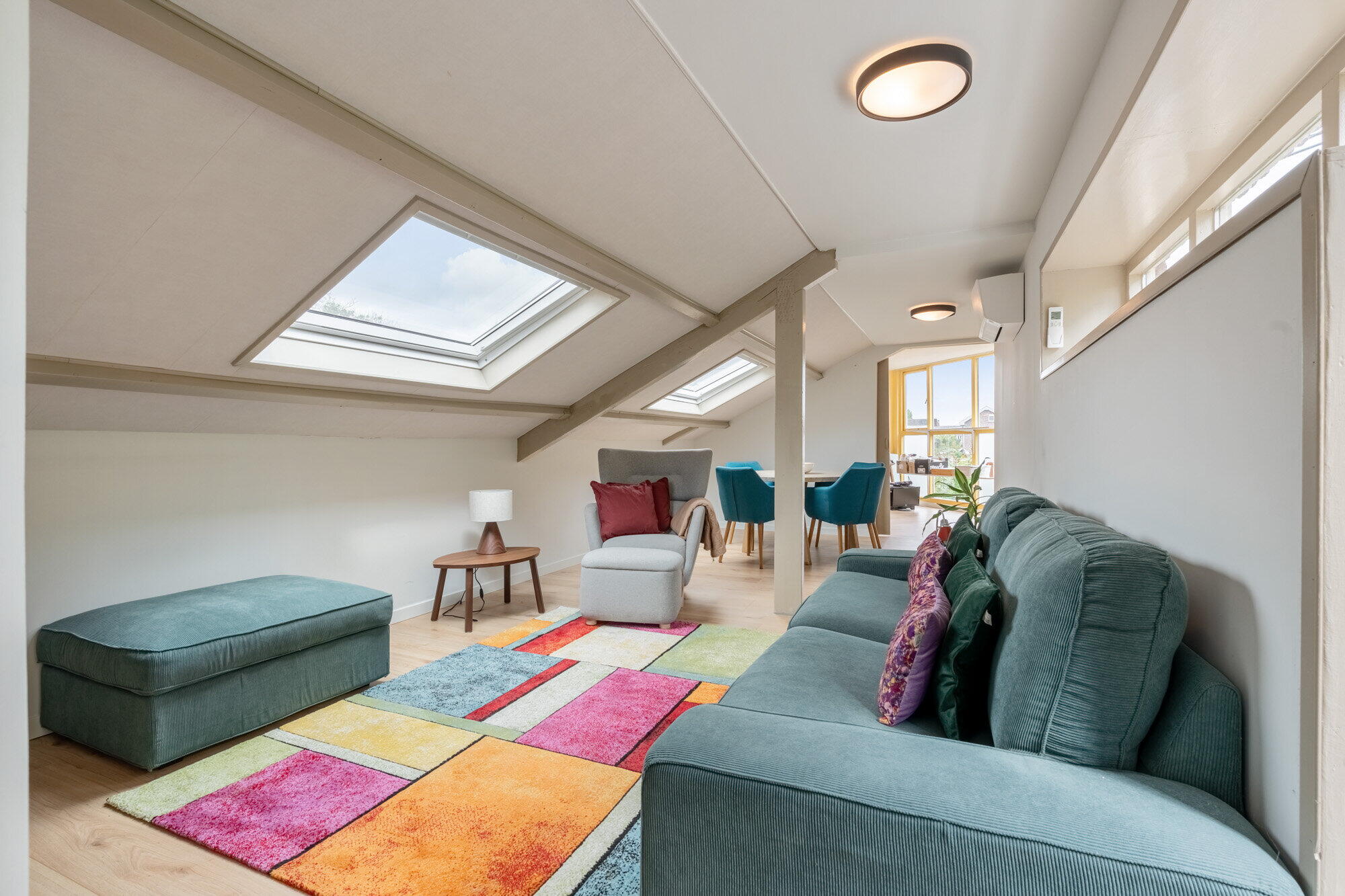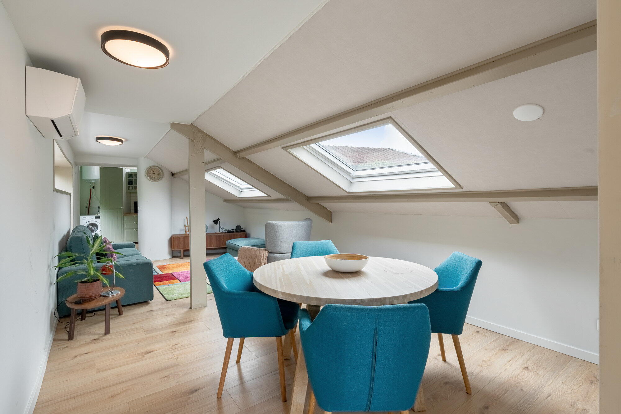 - Leefruimte voorzien van Veluxen, airco (Daikin) en een laminaatvloer;
