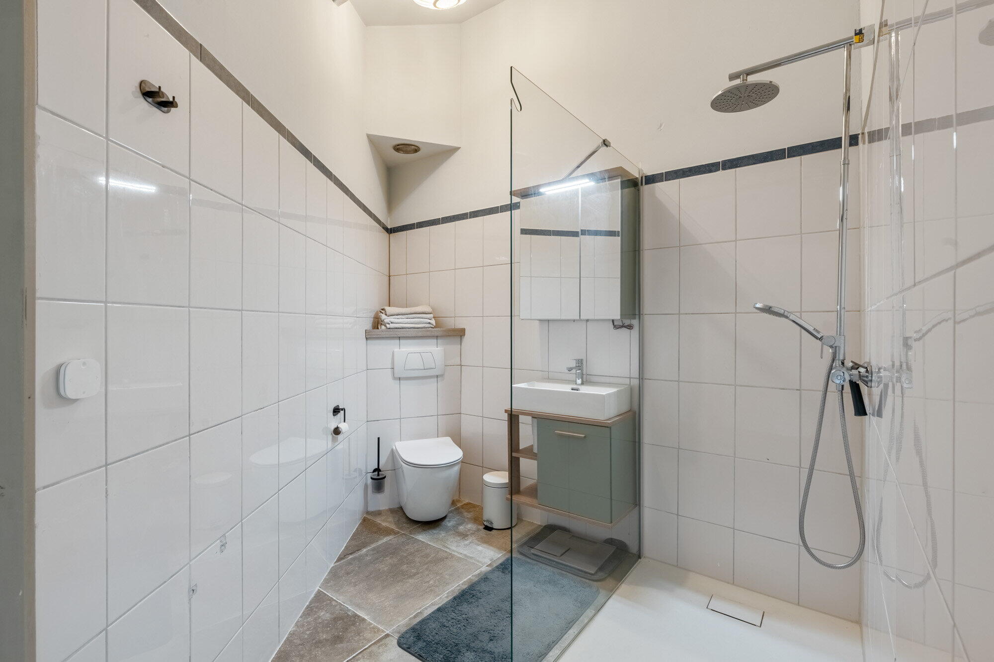 - Badkamer voorzien van toilet, inloopdouche, spoelbak, bad en aanwezigheid van afvoer voor een wasmachine;
